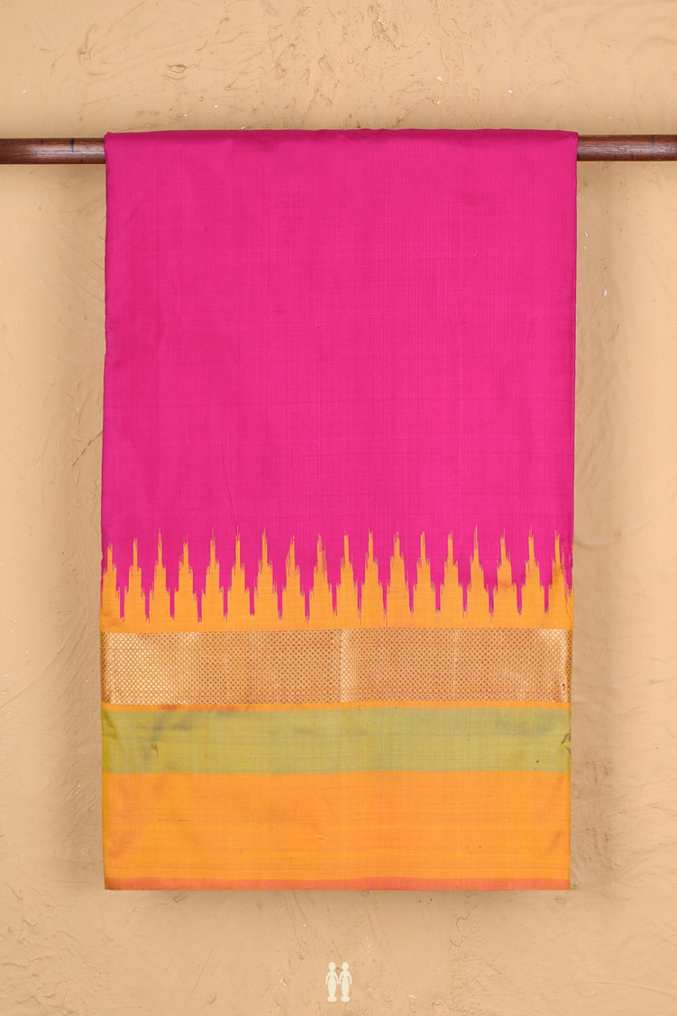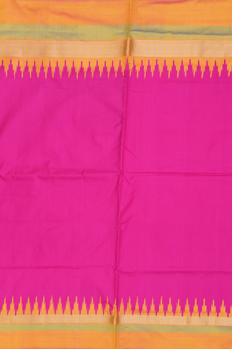 Pochampally Silk Saree In Rani Pink With Contrast Border
