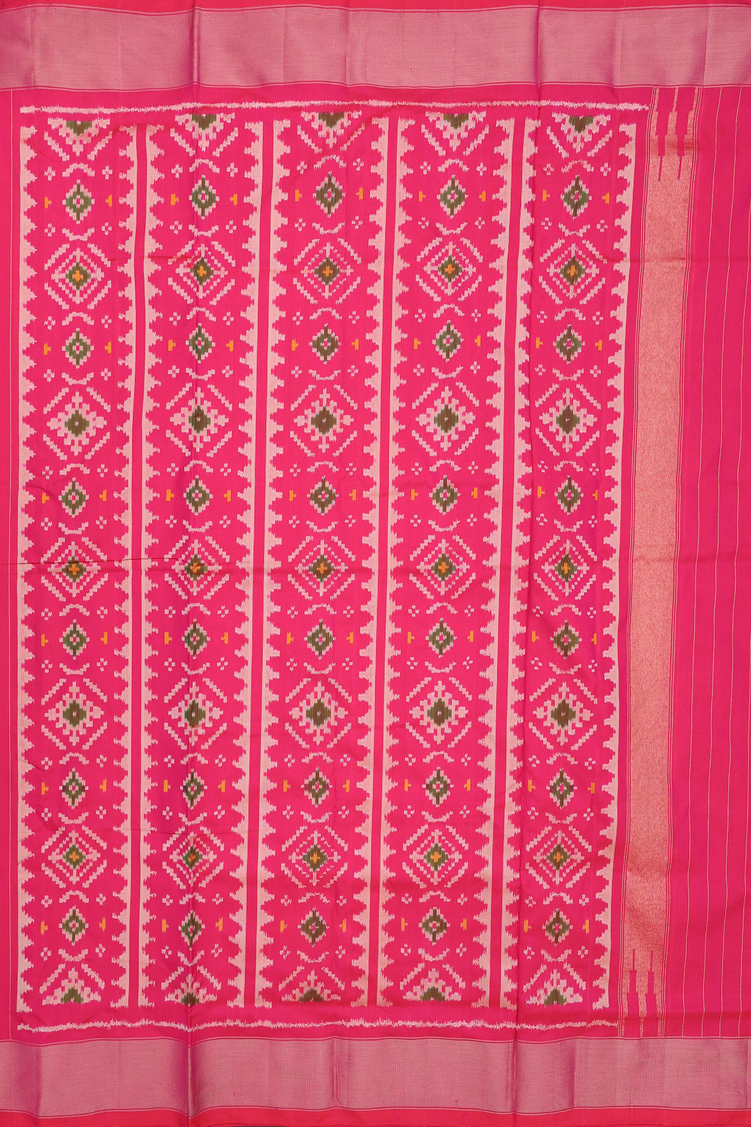 Pochampally Silk Saree In Rani Pink With Parrot Design