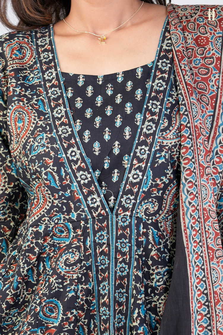 Elevate your traditional wardrobe with this printed design black cotton salwar set, crafted for comfort and style. Made from breathable cotton fabric, it ensures all-day ease while the intricate printed design adds a refined touch. Perfect for casual gatherings or festive occasions, this set combines elegance with practicality for a timeless look.