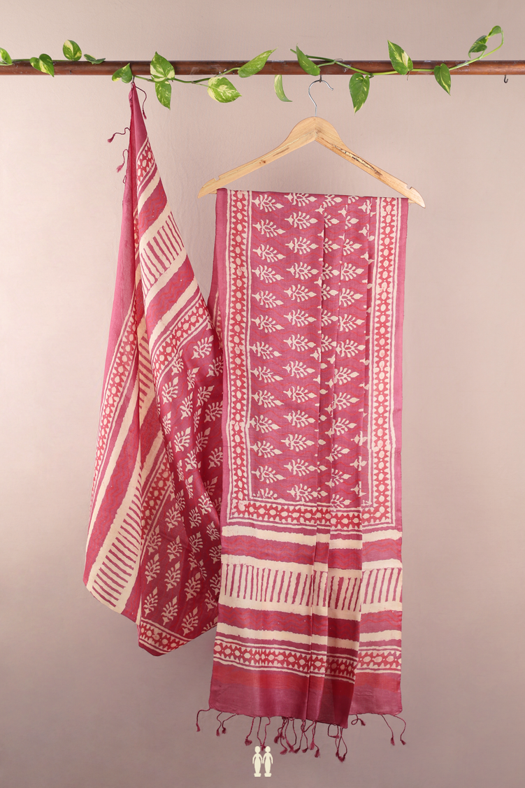 Printed Design Dusty Mulberry Tussar Silk Dupatta