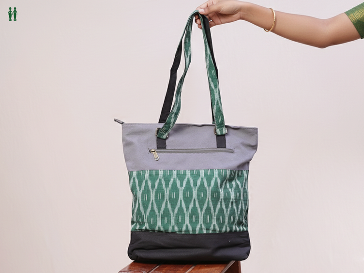 Printed Design Green Cotton Hand Bag