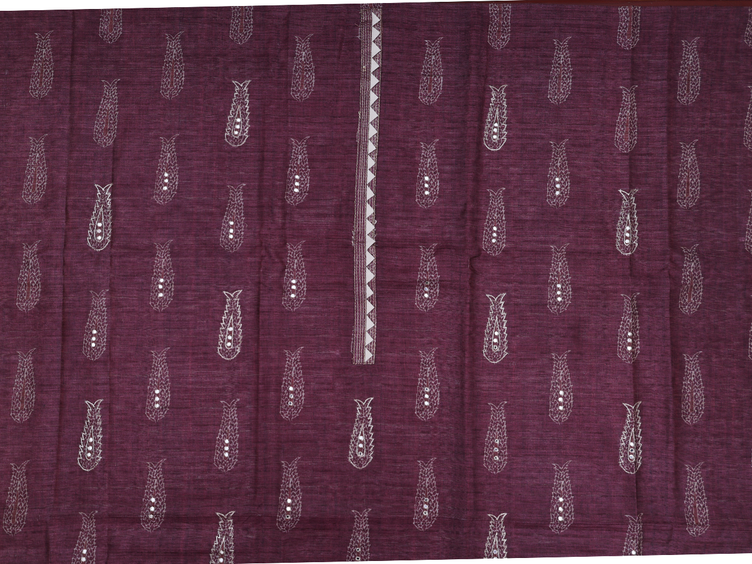 Printed Design Plum Purple Raw Silk Unstitched Salwar Set