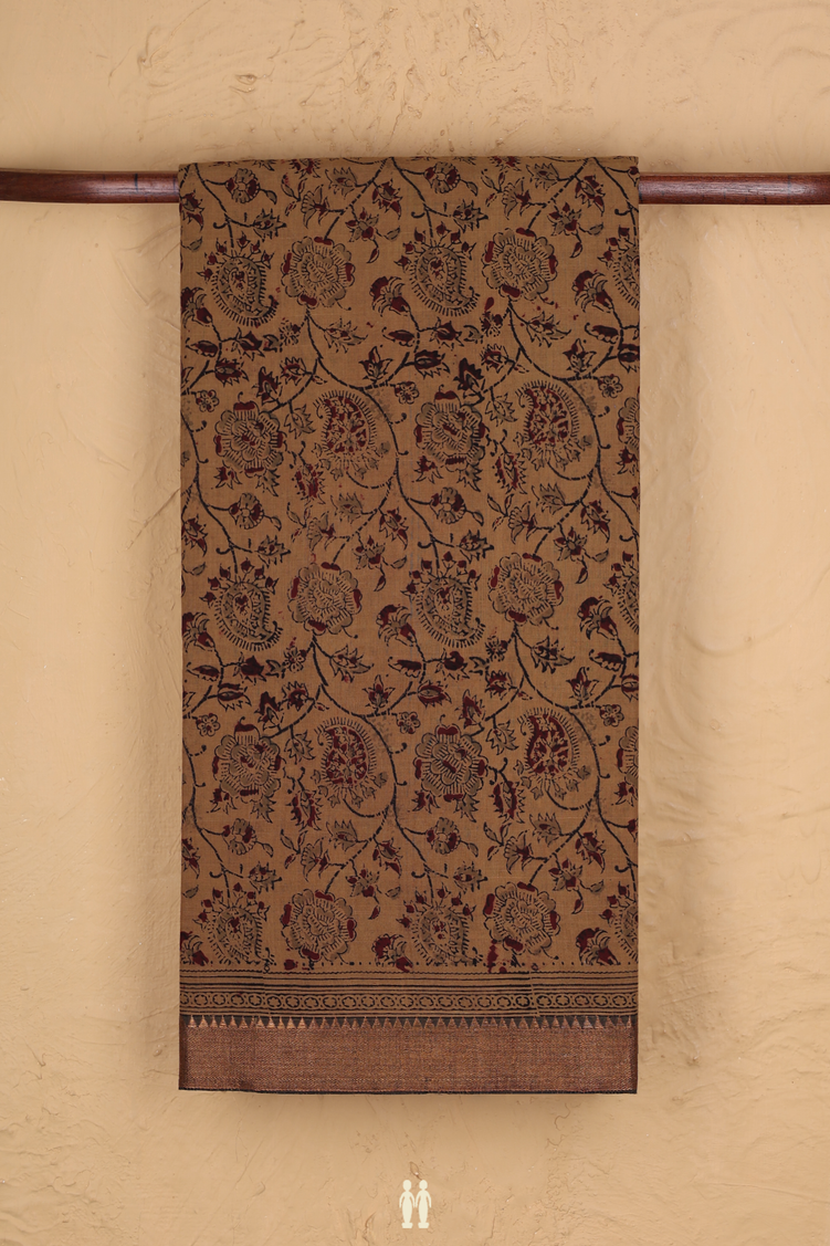 Mangalagiri Cotton Saree In Brown With Printed Design