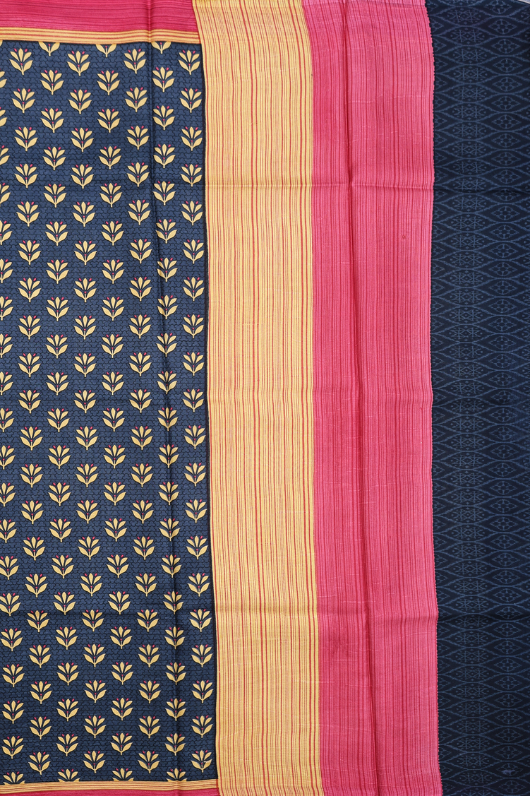 Elevate your wardrobe with this printed silk saree in a refined charcoal grey shade. Featuring an allover design, it blends timeless elegance with subtle artistry, making it perfect for formal occasions or sophisticated gatherings. The smooth silk fabric ensures a graceful drape and comfortable wear throughout the day.