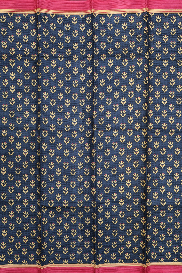 Printed Silk Saree In Charcoal Grey With Allover Design