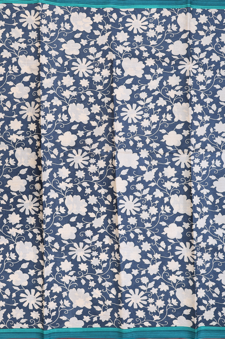 Printed Silk Saree In Charcoal Grey With Floral Design