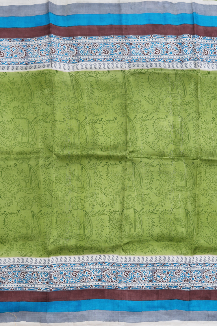 Elevate your elegance with this printed silk saree in a refined fern green shade, adorned with delicate floral motifs. Crafted from luxurious silk, it offers a graceful drape and a subtle sheen, perfect for special occasions. The intricate floral design adds timeless charm, making this saree a sophisticated choice for your wardrobe.