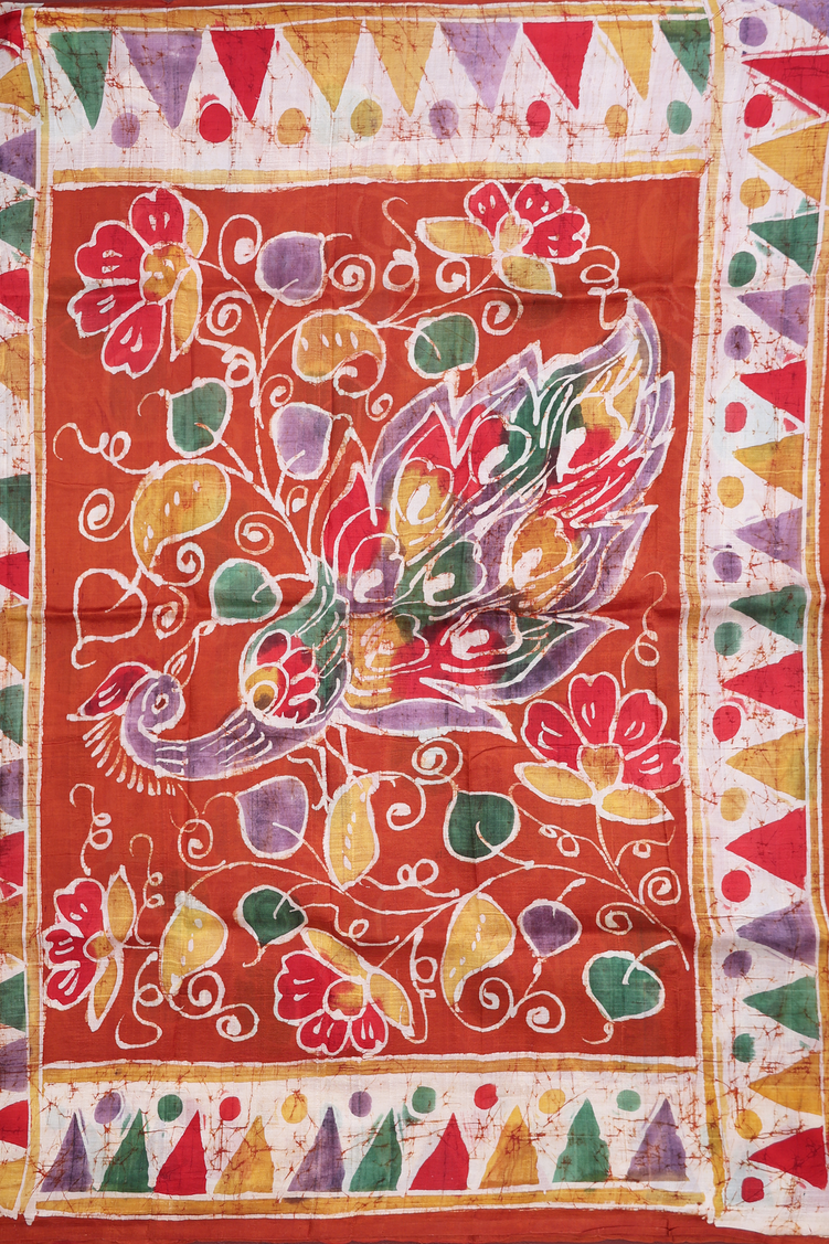 Elevate your elegance with this printed silk saree in a vibrant ginger orange shade, featuring an intricate allover design that adds depth and charm. Crafted from smooth silk, it offers a luxurious drape and timeless appeal, perfect for formal occasions or festive gatherings. The rich color and detailed pattern blend tradition with modern sophistication, making it a graceful addition to your wardrobe.