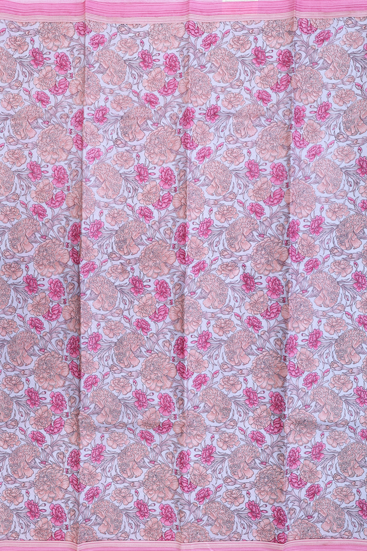 Printed Silk Saree In Grey With Floral Design