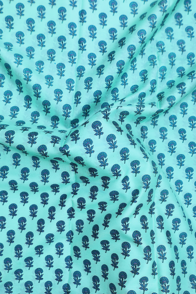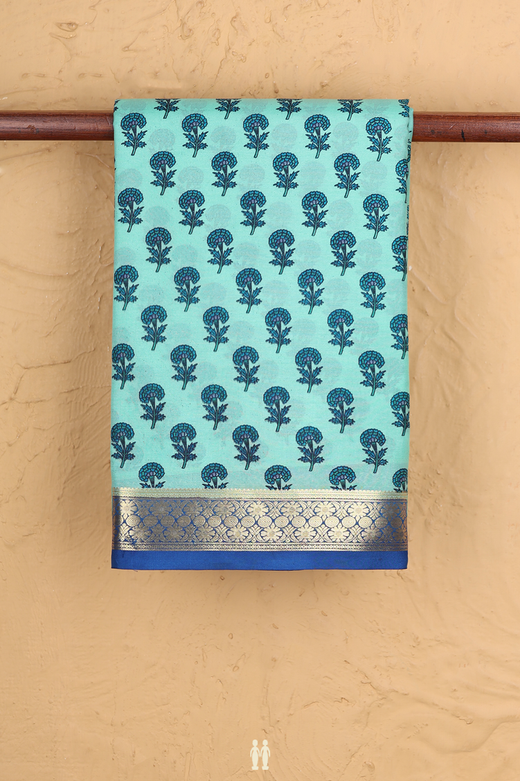 Elevate your ethnic wardrobe with this exquisite printed silk saree in serene mint blue. Adorned with delicate floral motifs, this piece seamlessly blends traditional elegance with contemporary aesthetics. The luxurious silk fabric drapes beautifully, offering both comfort and grace for special occasions, festive celebrations, or refined everyday wear. Perfect for those who appreciate timeless sophistication and artisanal craftsmanship.