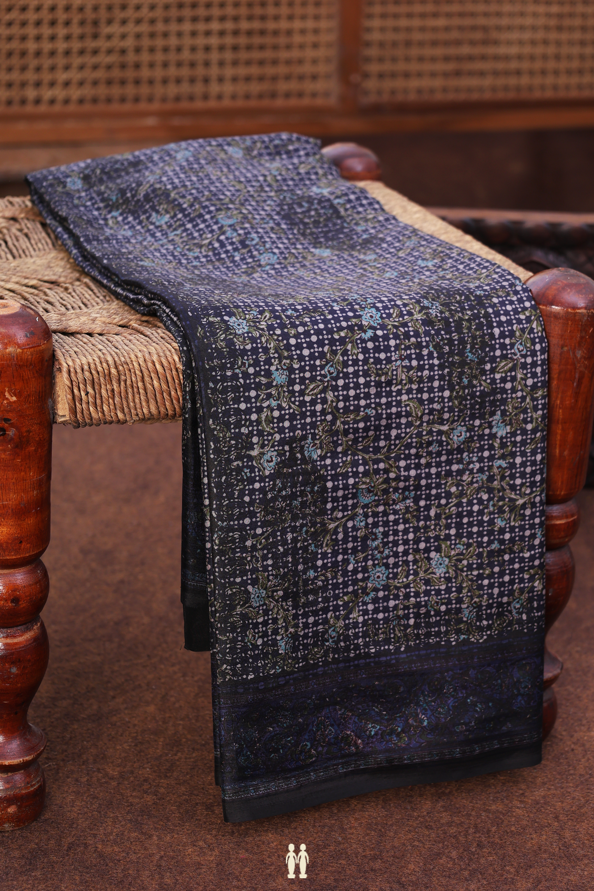 Elevate your ethnic wardrobe with this exquisite printed silk saree in deep navy blue. The allover design creates a seamless visual flow, offering timeless elegance for both traditional occasions and contemporary celebrations. Crafted from premium silk, this saree drapes beautifully while maintaining its shape, ensuring you look refined and poised. The sophisticated navy hue complements all skin tones, making it a versatile choice for weddings, festivals, and formal gatherings.Â