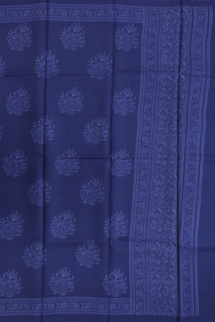 Elevate your ethnic wardrobe with this exquisite printed silk saree in deep navy blue, adorned with delicate floral motifs. Crafted from premium silk fabric, this saree drapes beautifully and offers a luxurious feel against the skin. The intricate floral design adds timeless elegance, making it perfect for festive occasions, celebrations, or refined everyday wear. The rich navy hue complements various skin tones while the graceful print ensures you stand out with understated sophistication.Â