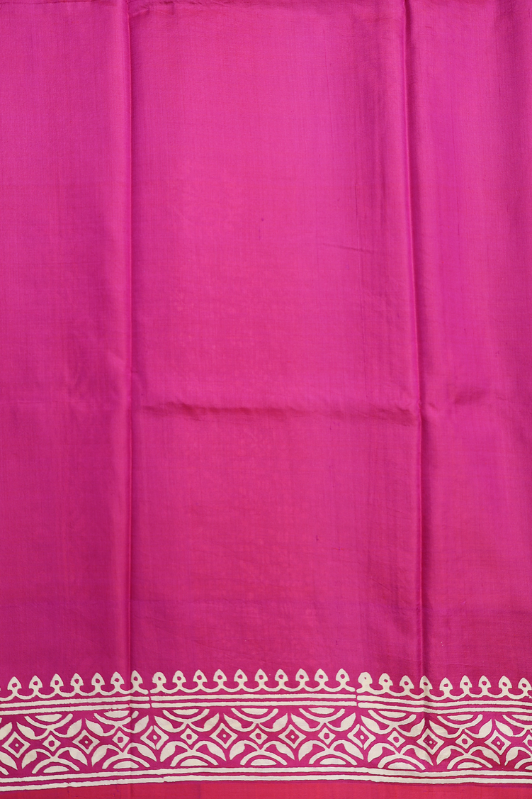 Elevate your elegance with this printed silk saree in a rich rani pink shade. Featuring an intricate allover design, it effortlessly blends tradition with contemporary style. The lustrous silk fabric drapes gracefully, making it perfect for festive occasions and formal events where refined charm is essential.