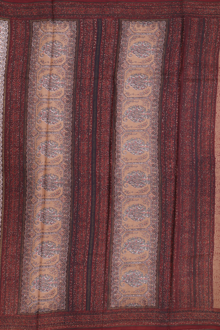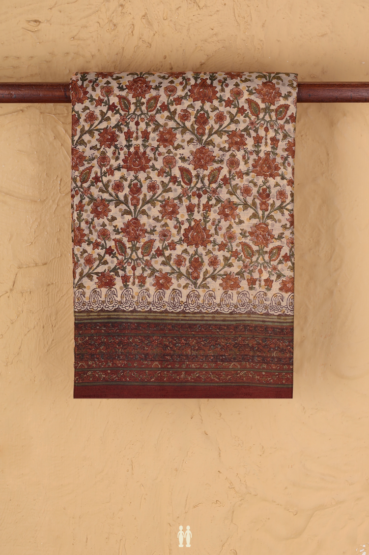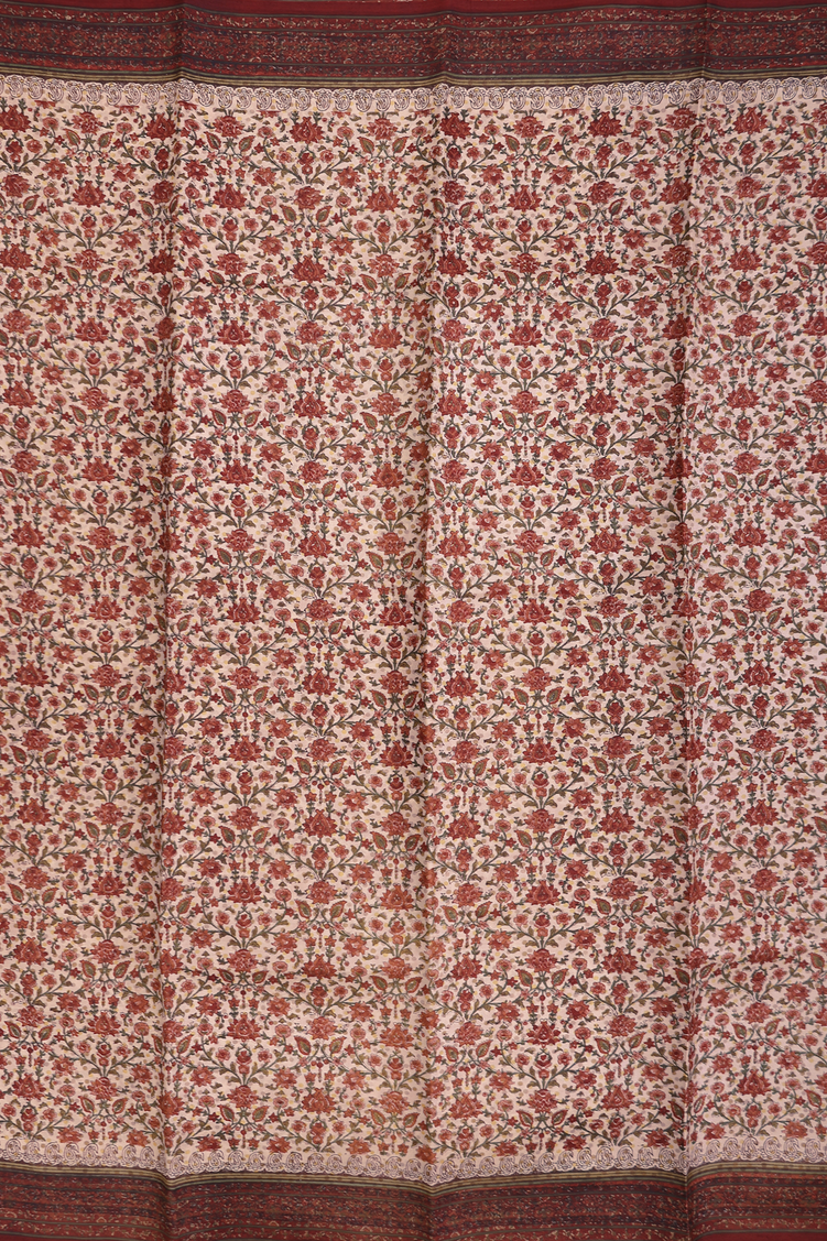 Elevate your ethnic wardrobe with this exquisite printed silk saree, showcasing an enchanting floral design rendered in luxurious rose gold tones with chcolate brown border and blouse. Crafted from premium silk, this saree drapes beautifully with a natural sheen that catches light gracefully. The intricate floral motifs add timeless elegance, making it perfect for weddings, festivals, and special occasions. The rich rose gold palette complements a variety of skin tones while maintaining a refined, contemporary aesthetic. Versatile and sophisticated, this saree seamlessly transitions from traditional celebrations to modern styling interpretations.
