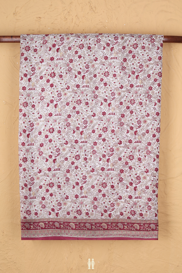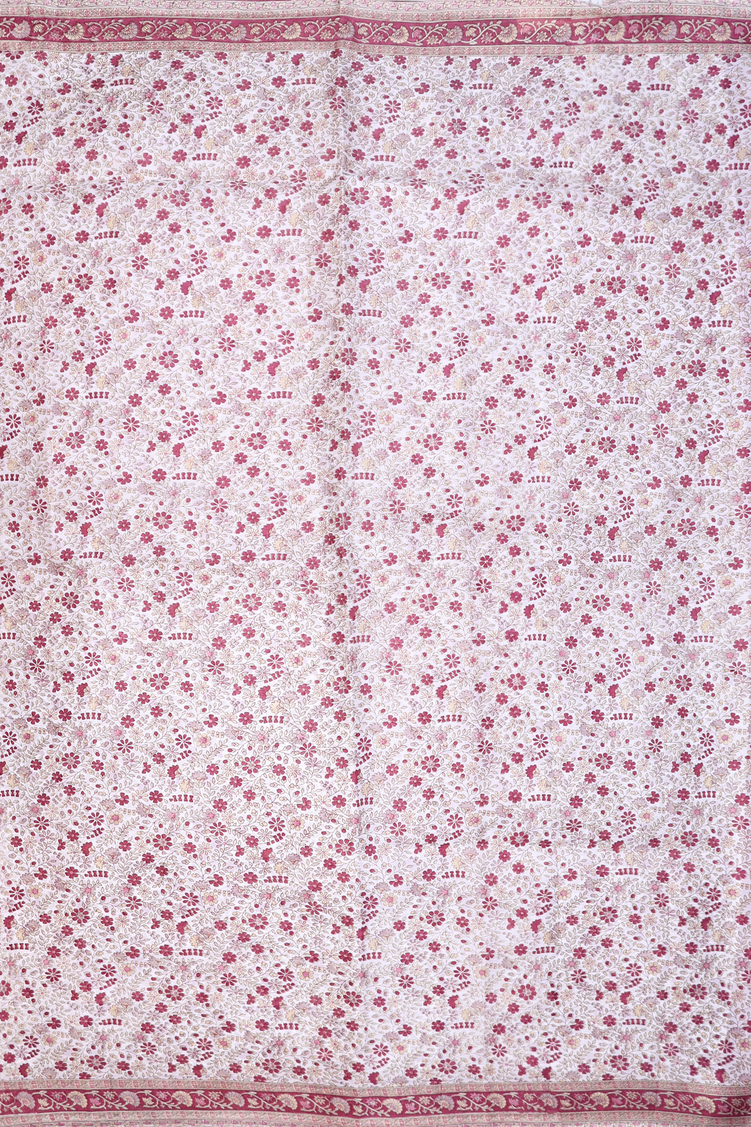 Elevate your elegance with this exquisite white silk saree, adorned with a delicate floral print. Crafted from premium silk, it offers a graceful drape and a subtle sheen, perfect for sophisticated occasions. The floral design adds a timeless charm, making it an ideal choice for celebrations or formal events where refined style is paramount.