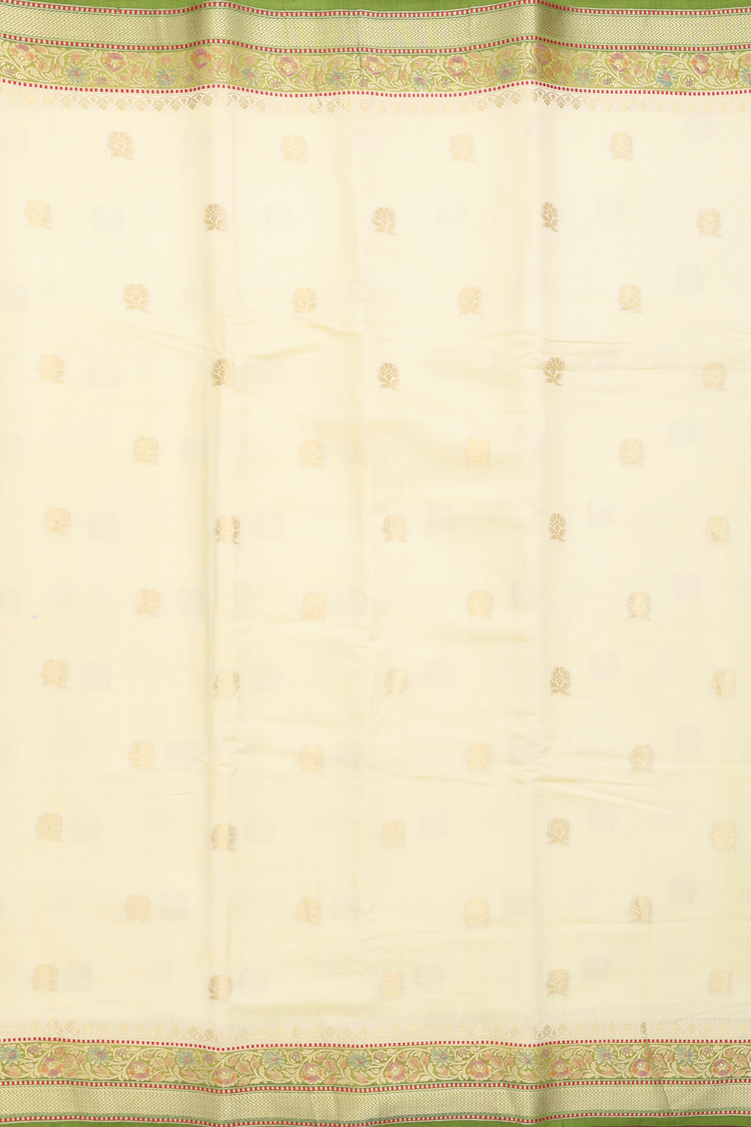Elevate your elegance with this beige raw silk saree adorned with delicate floral buttas. Crafted from rich raw silk, it offers a subtle sheen and a luxurious texture that drapes gracefully. The intricate floral motifs add a timeless touch, making it perfect for formal occasions and festive celebrations. This saree seamlessly blends tradition with sophistication, ensuring you make a refined statement wherever you go.