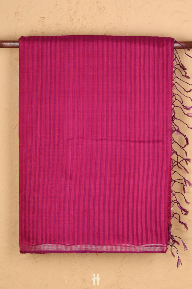 Raw Silk Saree In Berry Purple With Stripes Design