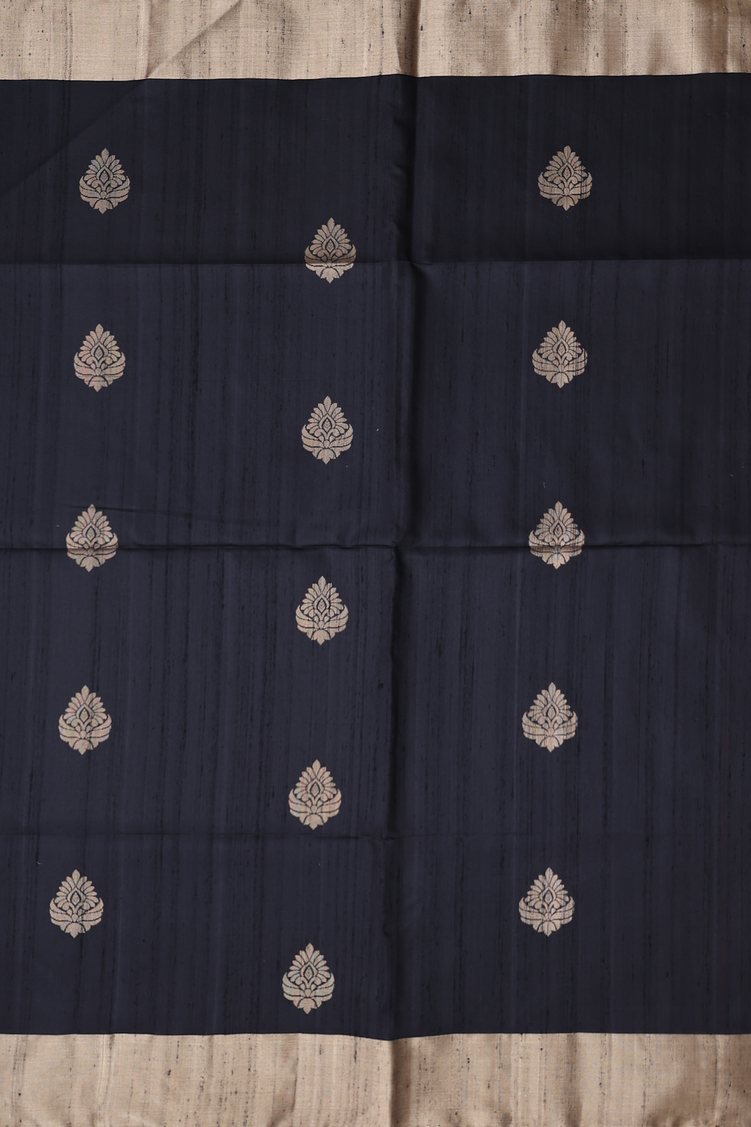 Elevate your ethnic wardrobe with this exquisite raw silk saree in deep black, adorned with intricate zari buttas that catch the light with every movement. The natural texture of raw silk drapes beautifully while maintaining its structured elegance, making it ideal for festive occasions, weddings, and formal celebrations. The delicate gold zari embellishments add a touch of timeless luxury without overwhelming the sophisticated simplicity of the black base. Perfect for those who appreciate understated opulence and traditional craftsmanship.