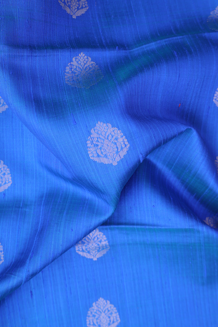Raw Silk Saree In Blue With Zari Buttas