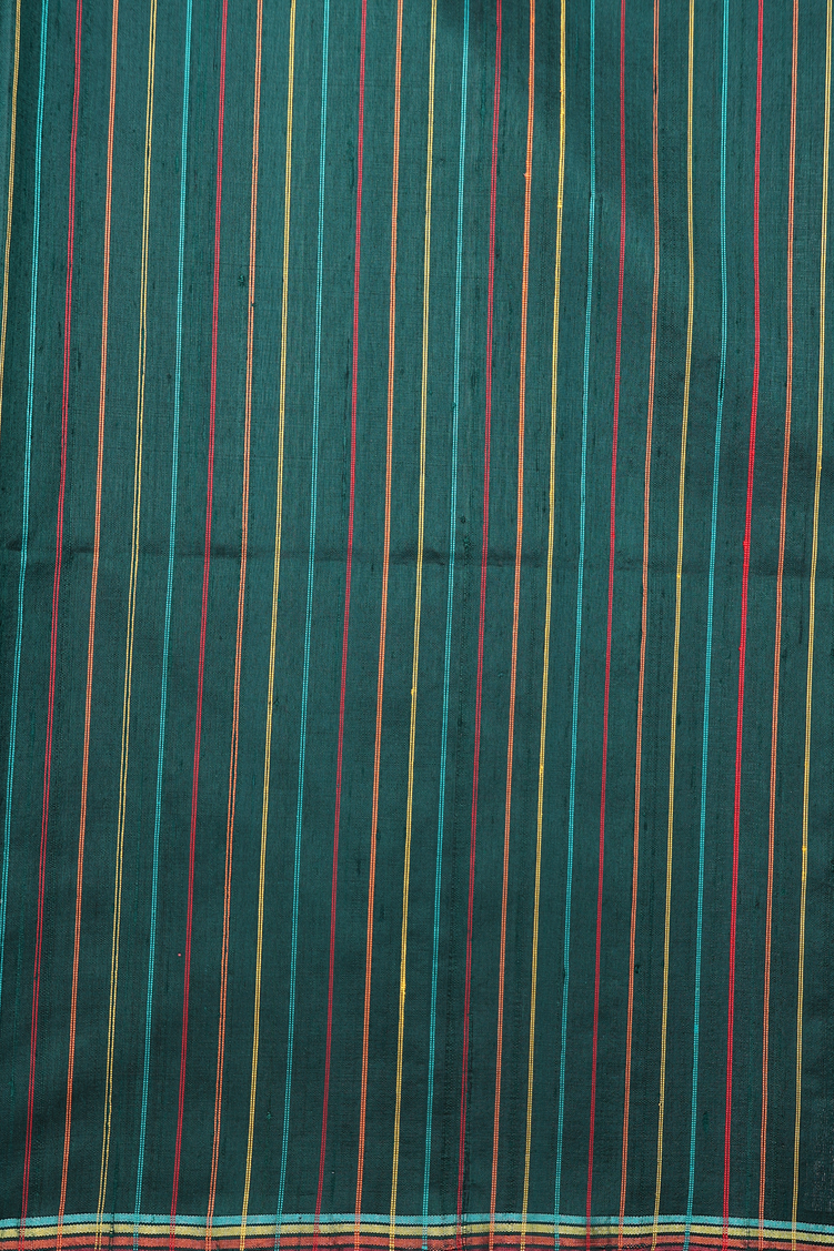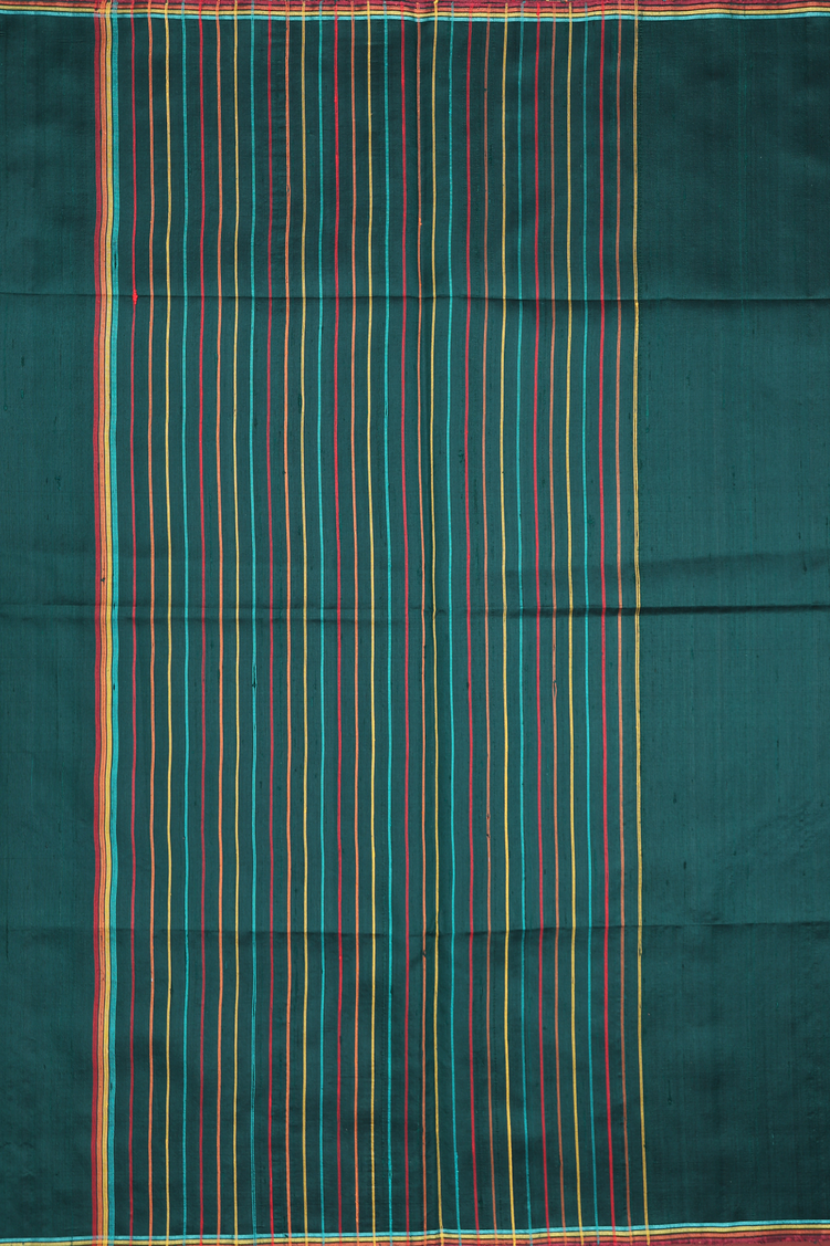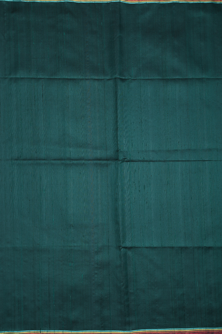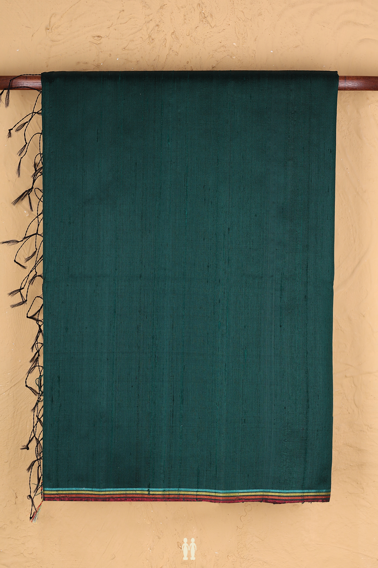 Raw Silk Saree In Bottle Green With Contrast Border