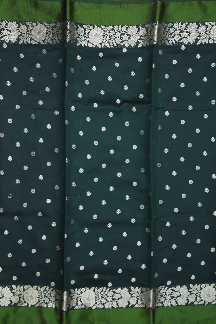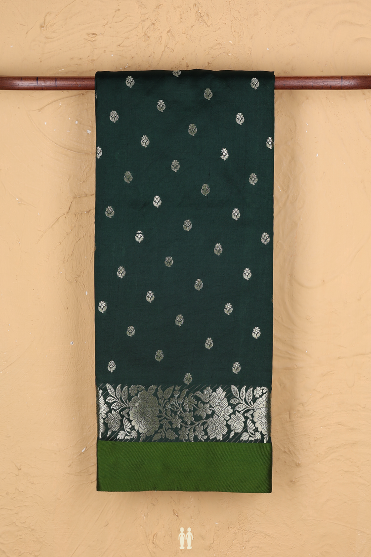Raw Silk Saree In Bottle Green With Floral Buttas