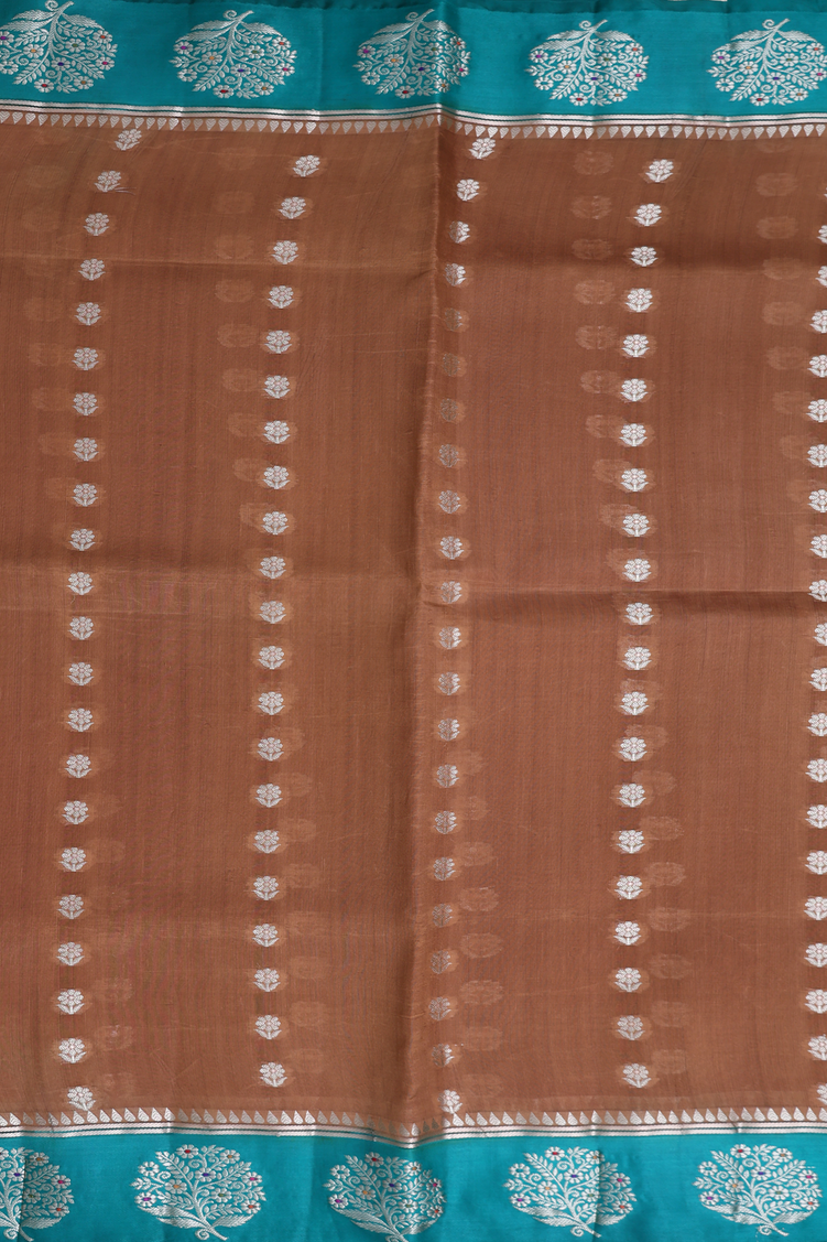 Raw Silk Saree In Caramel Brown With Floral Buttas