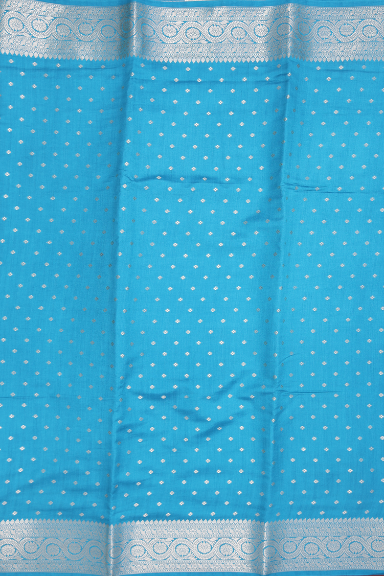 Raw Silk Saree In Deep Sky Blue With Floral Buttis