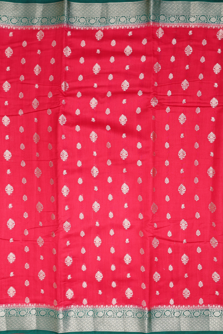 Raw Silk Saree In Chilli Red With Floral Buttas