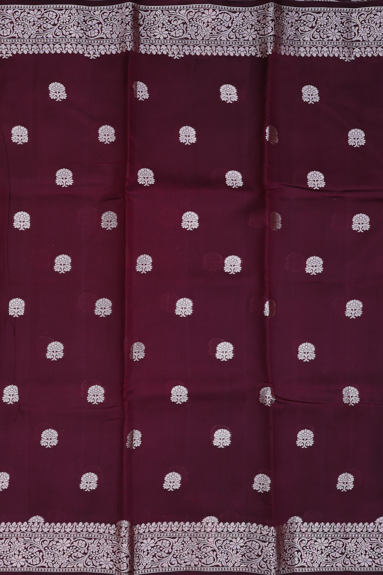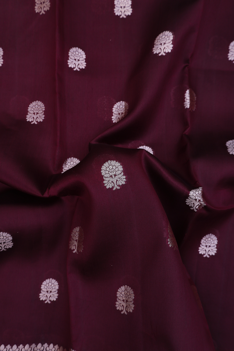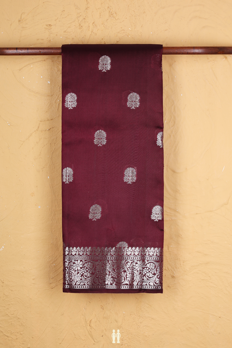 Raw Silk Saree In Coffee Brown With Floral Buttas