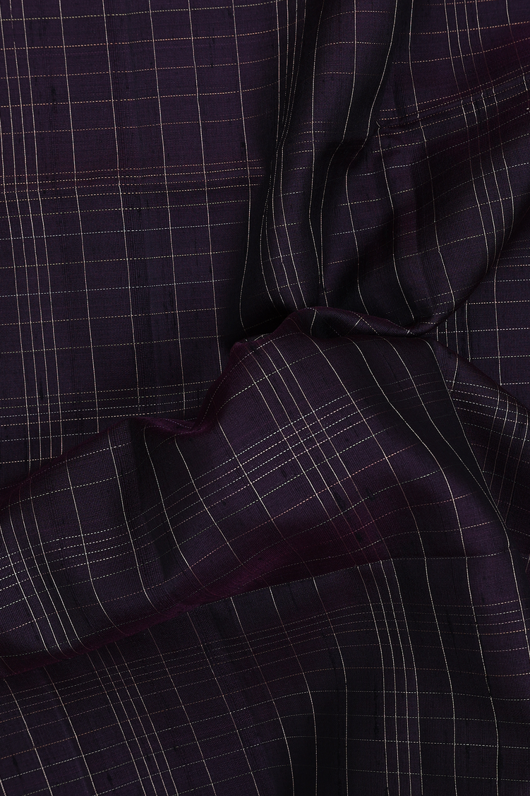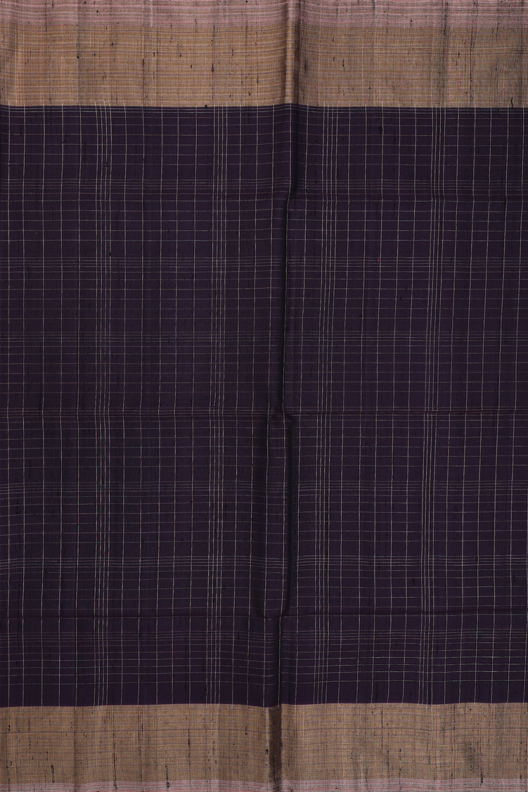 Raw Silk Saree In Dark Oak Brown With Checks Design