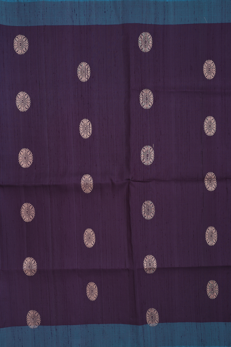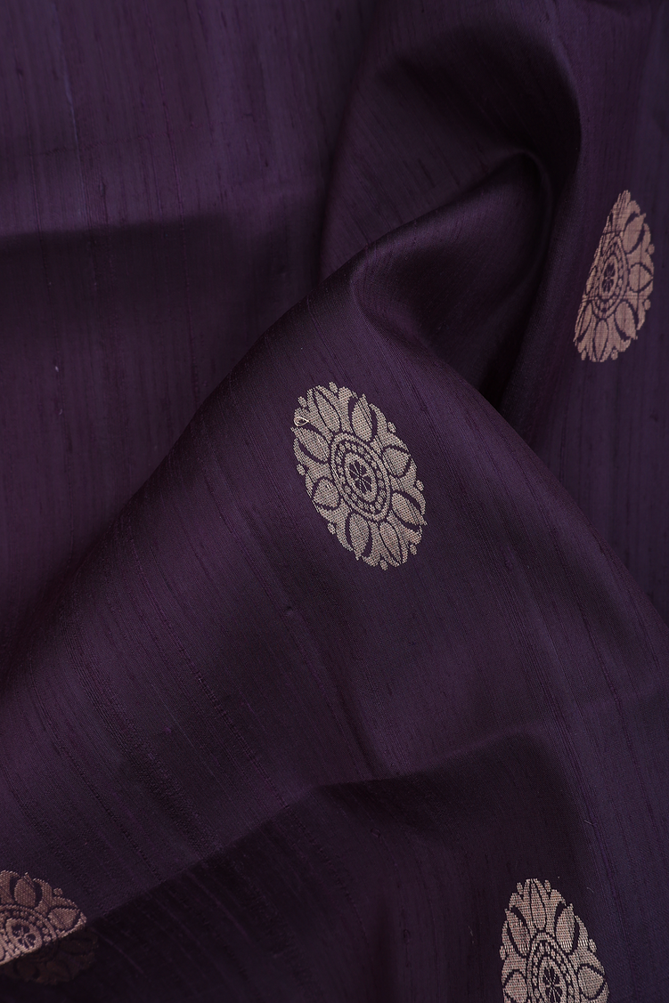 Raw Silk Saree In Dark Purple With Zari Buttas