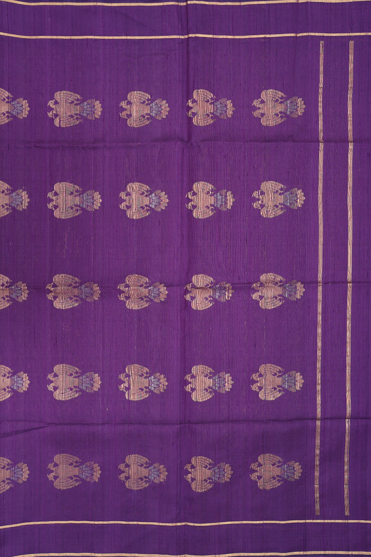 Drape yourself in timeless elegance with this exquisite raw silk saree in deep purple. Crafted from luxurious raw silk, this saree features an intricate Iruthalai Pakshi (peacock) motif on the pallu, showcasing traditional South Indian weaving artistry. The rich purple hue exudes sophistication and grace, making it perfect for weddings, festivals, and special occasions. The natural texture of raw silk provides a distinctive sheen and comfortable drape, while the detailed pallu design adds a striking focal point. A versatile choice for those who appreciate authentic handwoven textiles and classic saree styling.