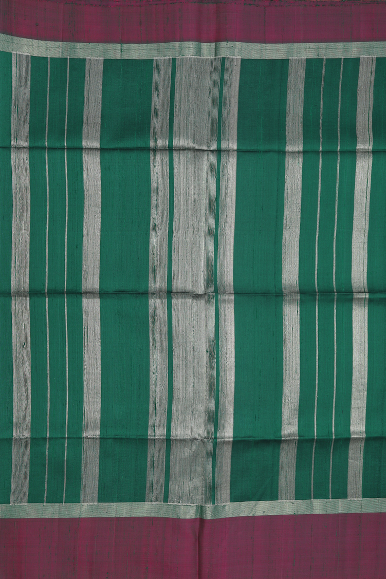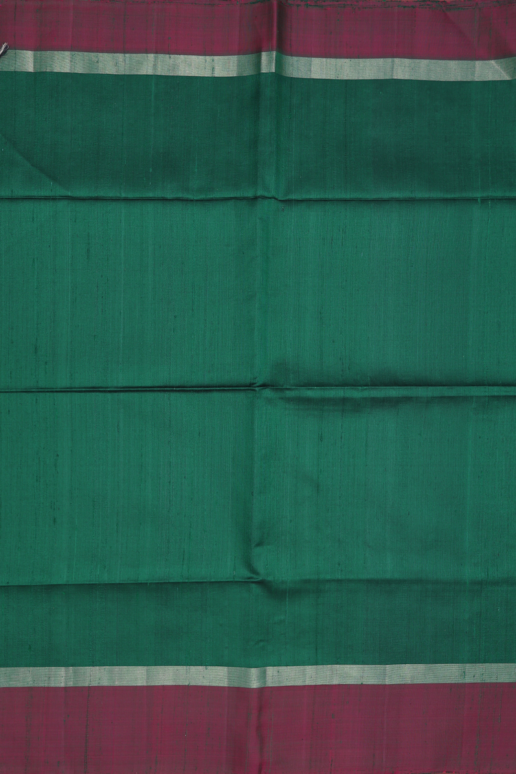 Elevate your elegance with this raw silk saree in a rich forest green shade, enhanced by a striking contrast border. The natural texture of the raw silk lends a refined, understated luxury, while the bold border creates a harmonious balance, perfect for formal occasions and festive celebrations. This saree offers timeless sophistication and effortless grace, making it a versatile addition to your wardrobe.