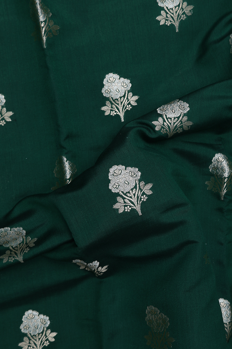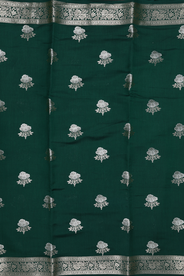 Elevate your wardrobe with this exquisite raw silk saree in a rich forest green hue, adorned with delicate floral buttas. The subtle sheen of raw silk combined with intricate motifs offers a timeless elegance perfect for special occasions. Experience refined craftsmanship and graceful drape that enhances your silhouette with every wear.
