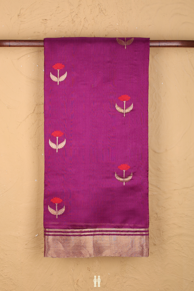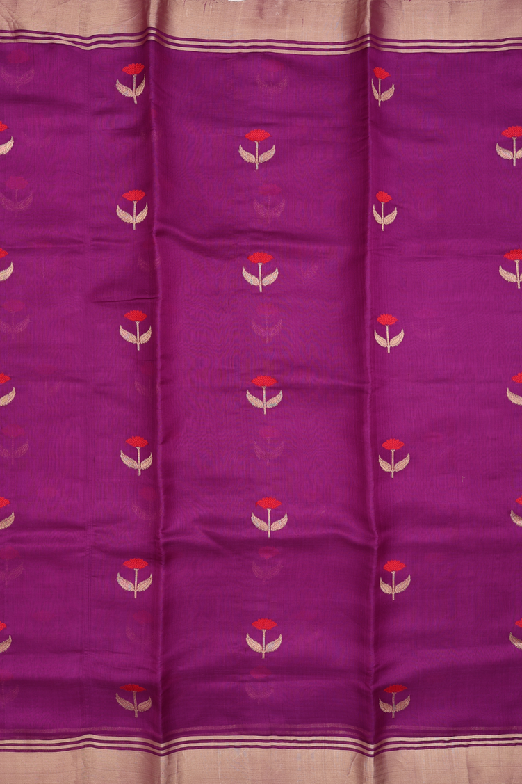 Raw Silk Saree In Grape Purple With Floral Buttas