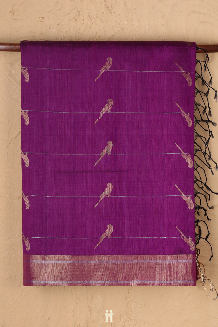 Raw Silk Saree In Grape Purple With Parrot Design