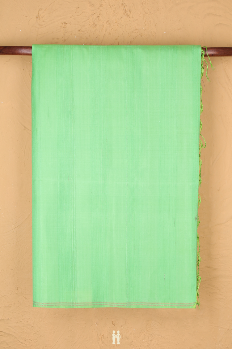 Raw Silk Saree In Green With Plain