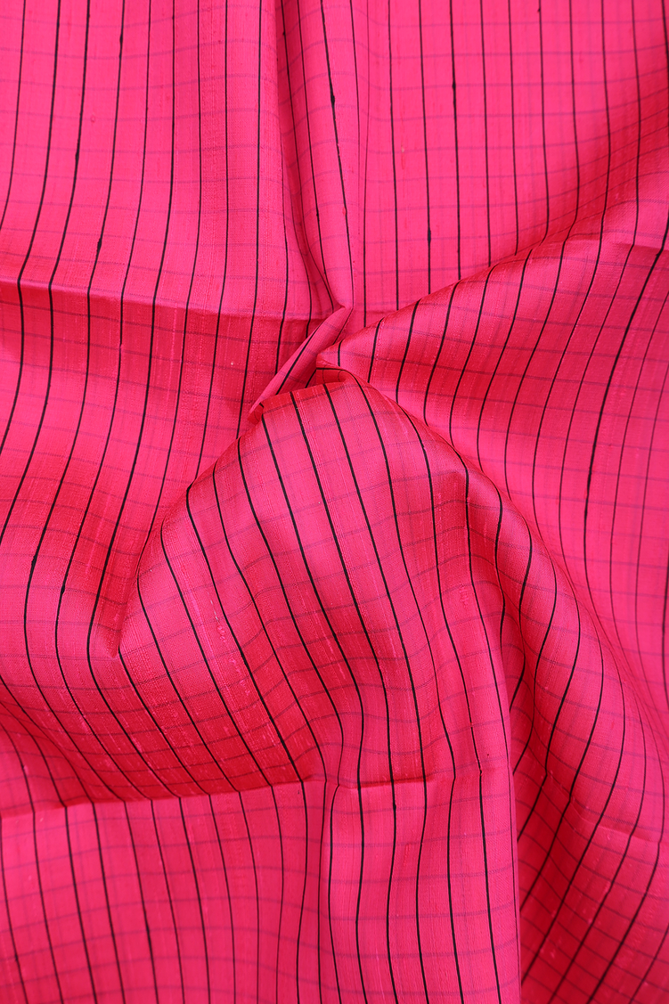 Raw Silk Saree In Hot Pink With Checks Design