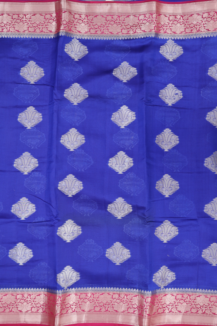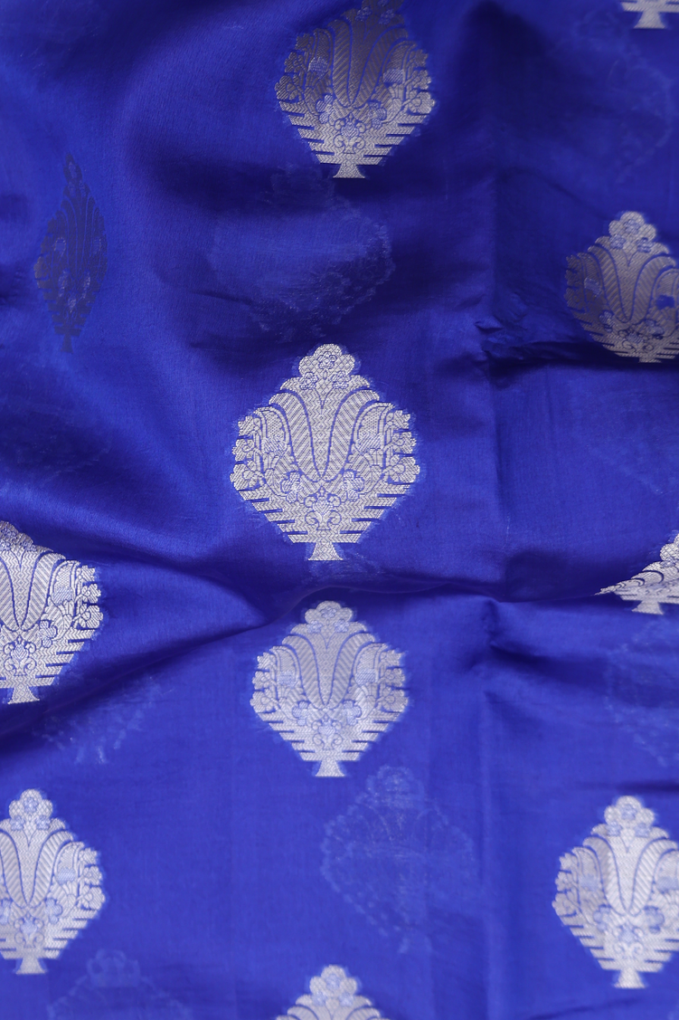 Raw Silk Saree In Indigo Blue With Zari Motifs