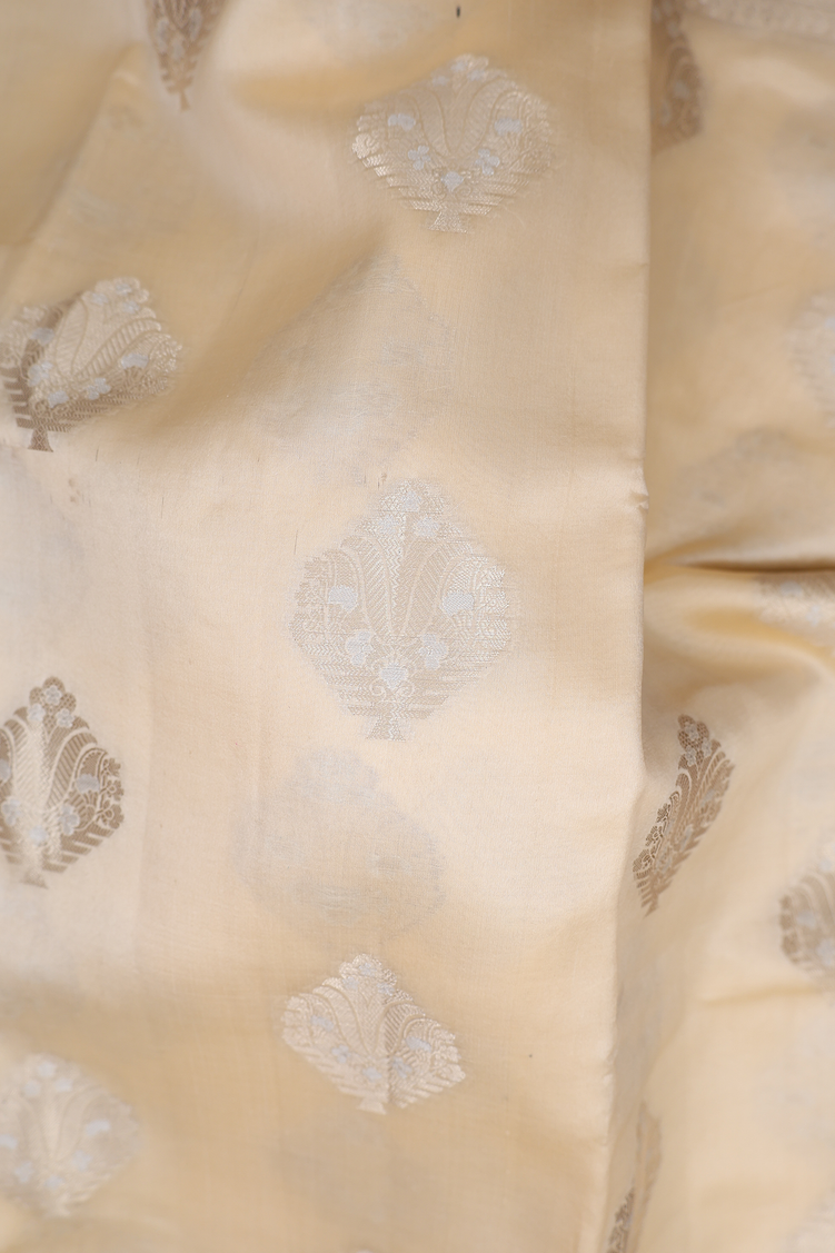 Raw Silk Saree In Ivory With Zari Motifs