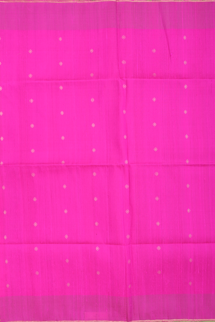 Elevate your ethnic collection with this exquisite raw silk saree in a rich magenta hue. Adorned with delicately woven floral buttas, it combines timeless elegance with subtle artistry. The lustrous texture of the raw silk enhances its regal appeal, making it perfect for special occasions or festive gatherings. Experience a sophisticated blend of tradition and style that celebrates graceful femininity.