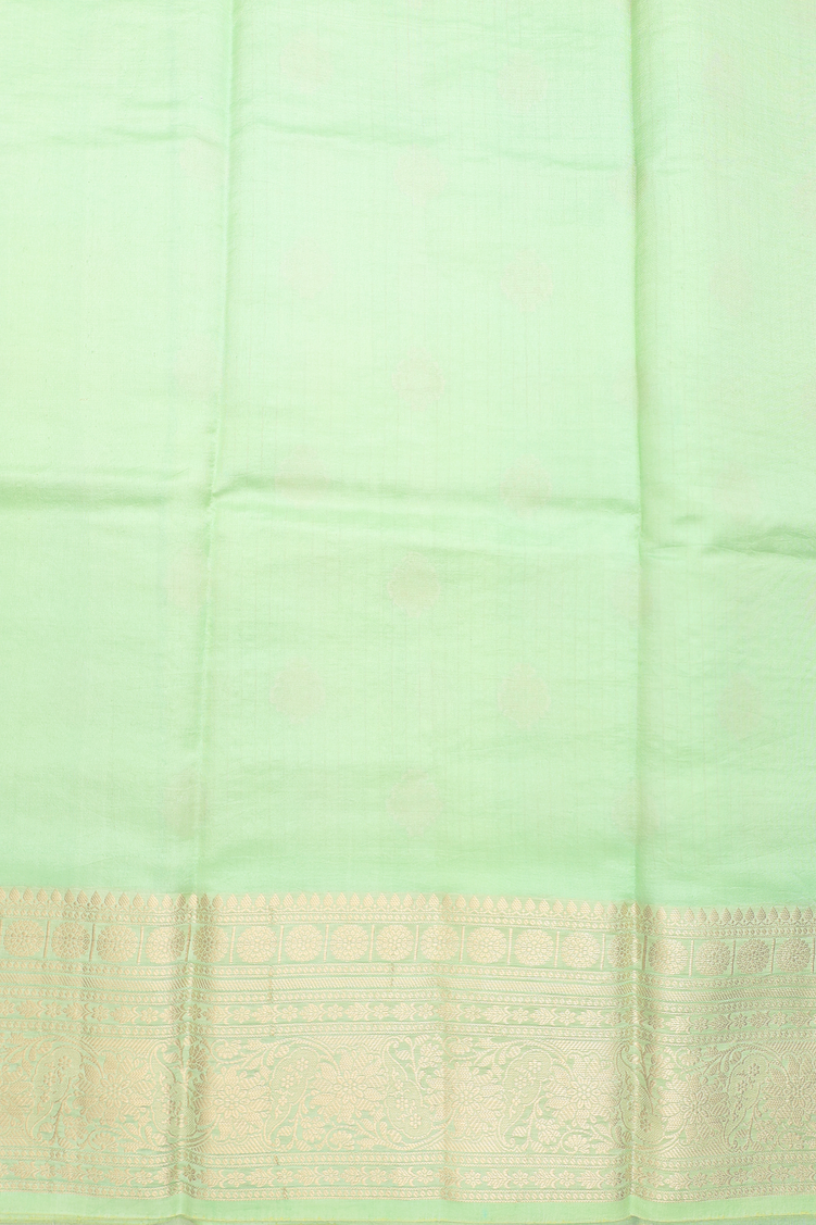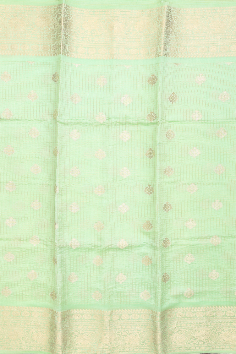 Raw Silk Saree In Mint Green Along Checks With Buttas
