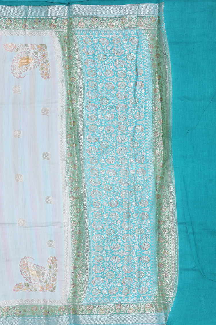 Elevate your elegance with this multicolored raw silk saree, adorned with delicate floral buttas. The rich texture of raw silk offers a graceful drape, while the vibrant floral motifs add a timeless charm. Perfect for special occasions, this saree combines traditional craftsmanship with a refined aesthetic for a sophisticated statement.