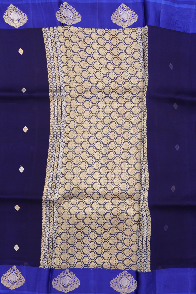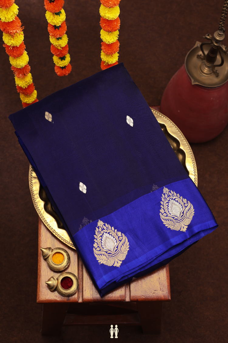 Raw Silk Saree In Navy Blue With Zari Buttas