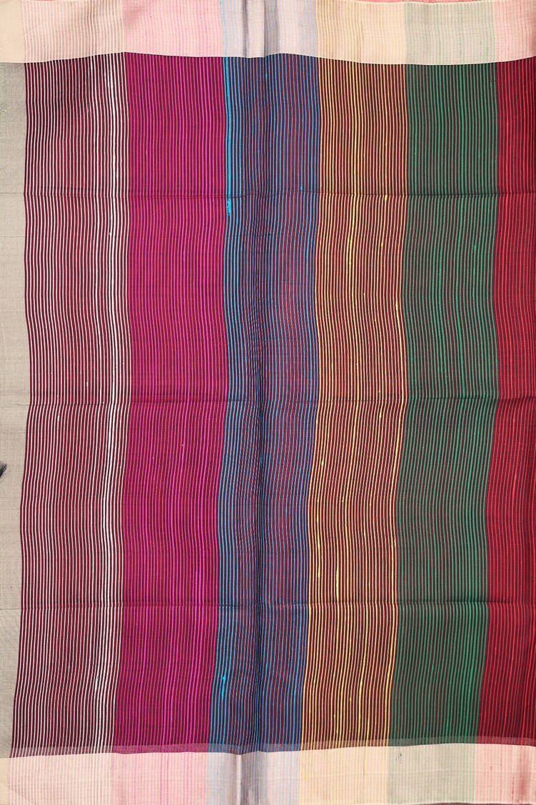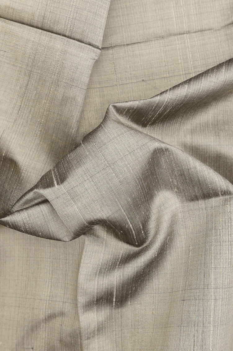 Raw Silk Saree In Plain Dusty Olive With Bavanchi Border