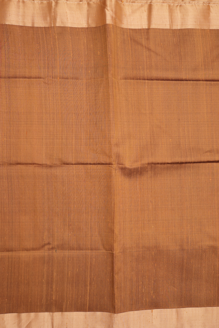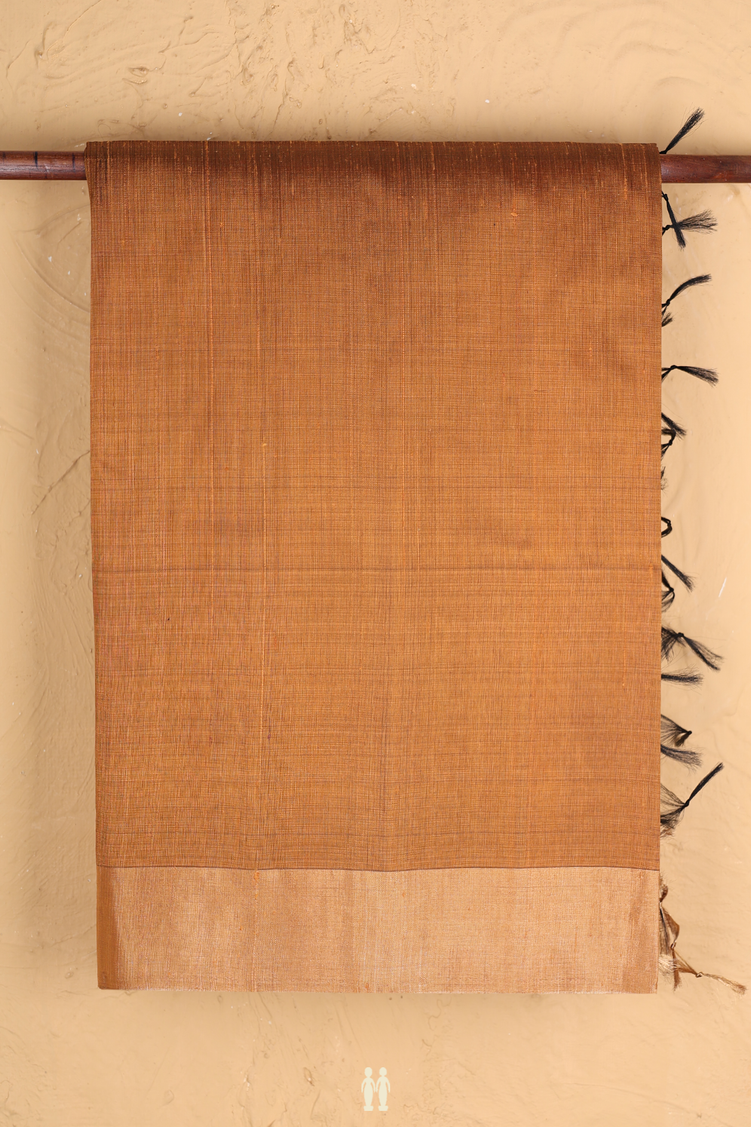 Raw Silk Saree In Plain Golden Brown With Bavanchi Border
