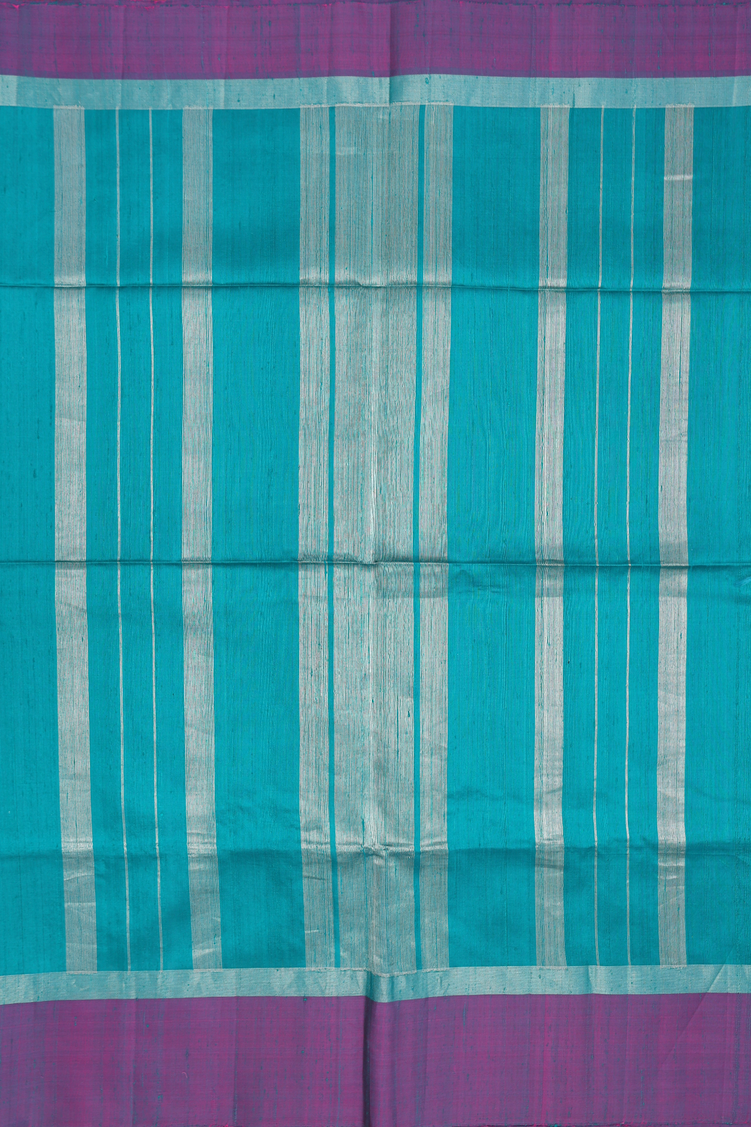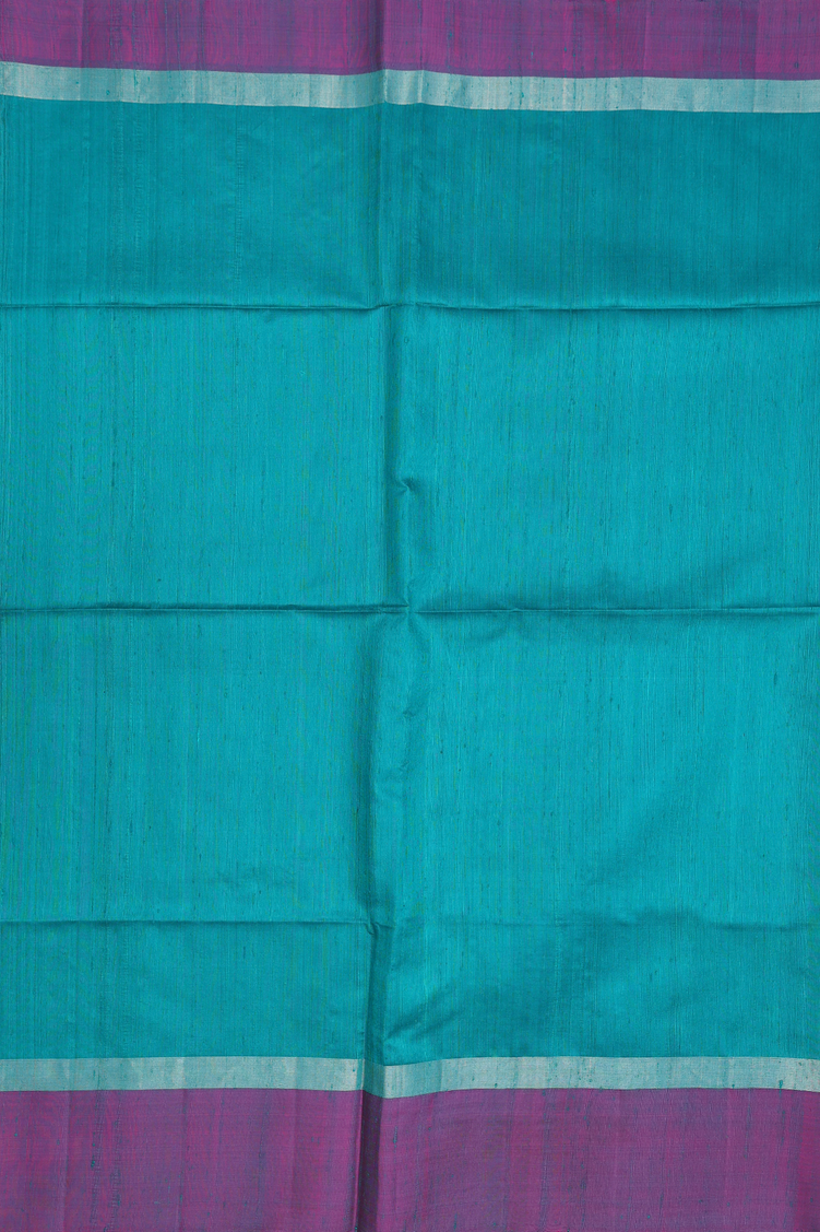 Raw Silk Saree In Plain Peacock Green With Contrast Border