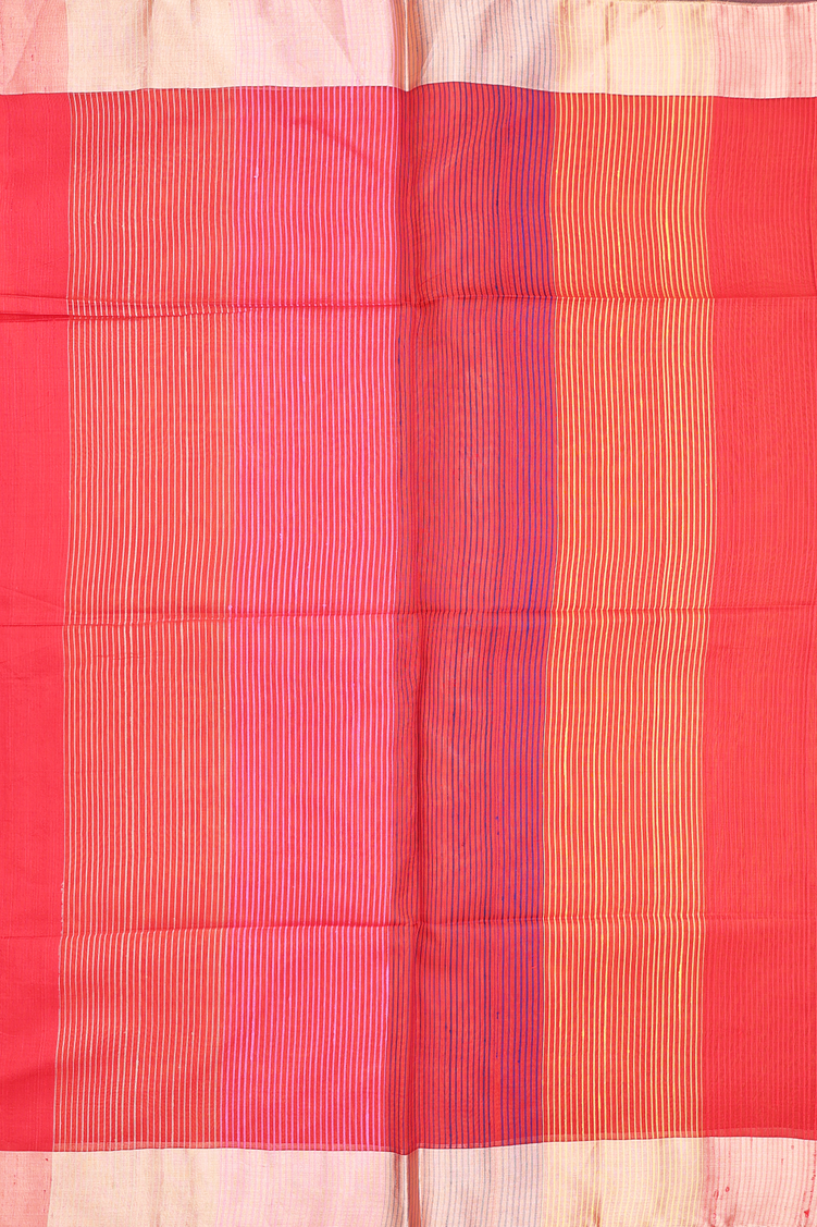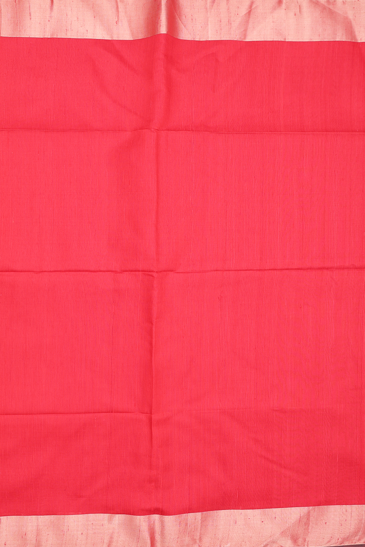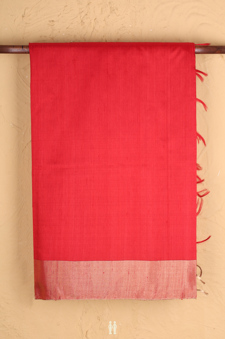 Raw Silk Saree In Plain Scarlet Red With Bavanchi Border
