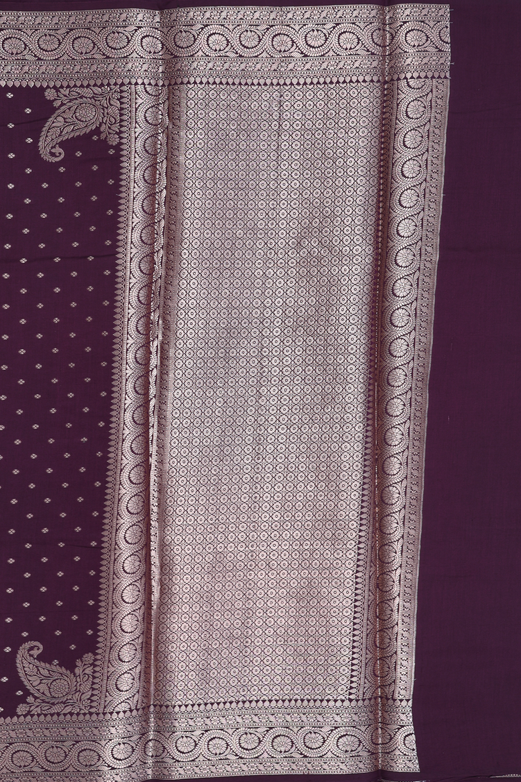Raw Silk Saree In Plum Purple With Floral Buttis