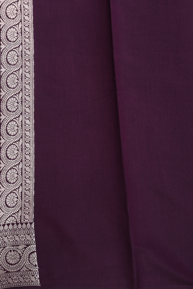 This raw silk Saree in rich plum purple showcases delicate floral buttis woven throughout, blending traditional artistry with a refined palette. The lustrous raw silk fabric adds subtle texture and elegance, making it perfect for formal occasions or festive celebrations. Its sophisticated design enhances your graceful silhouette while offering timeless appeal.